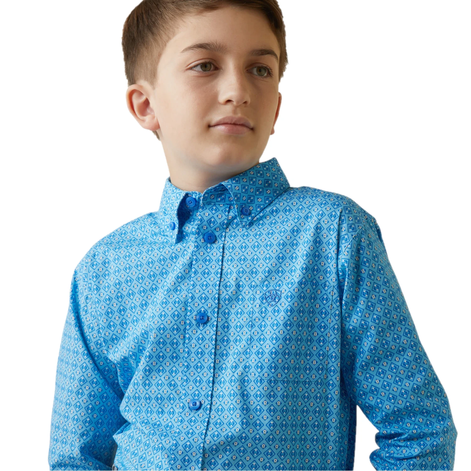 Ariat® Boys Lake Diamond Print Blue Grotto Button Down Shirt 10043714