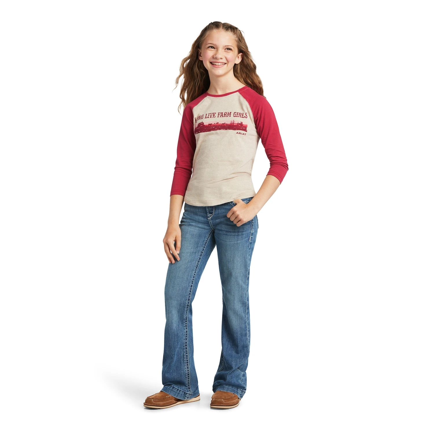 Ariat® Girl’s REAL Long Live Oatmeal Heather/Red Bud T-Shirt 10039502