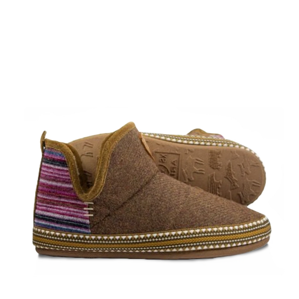 - Wool blend upper with suede trim and serape print accent