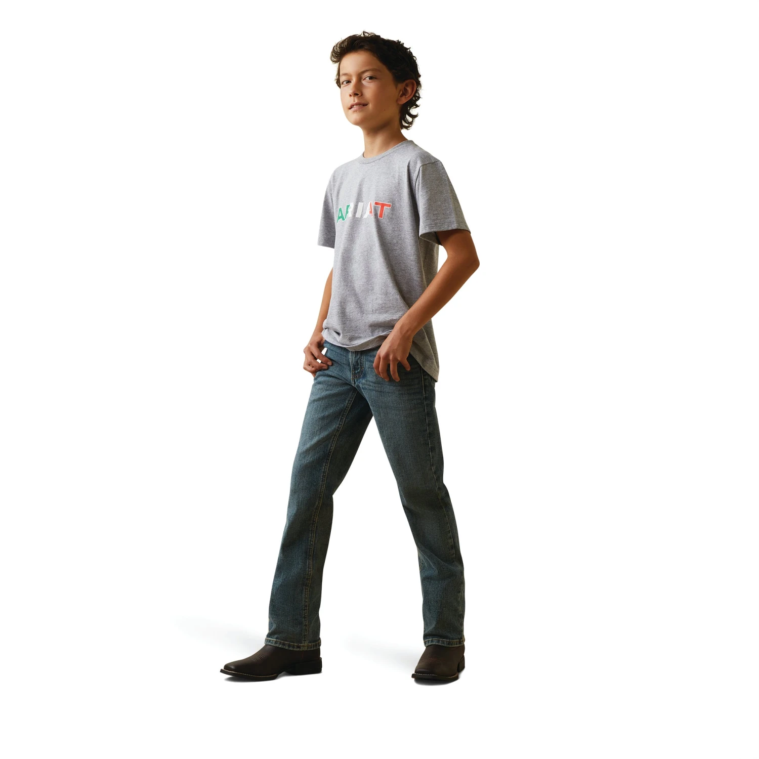 - Mexican flag Ariat logo on chest.